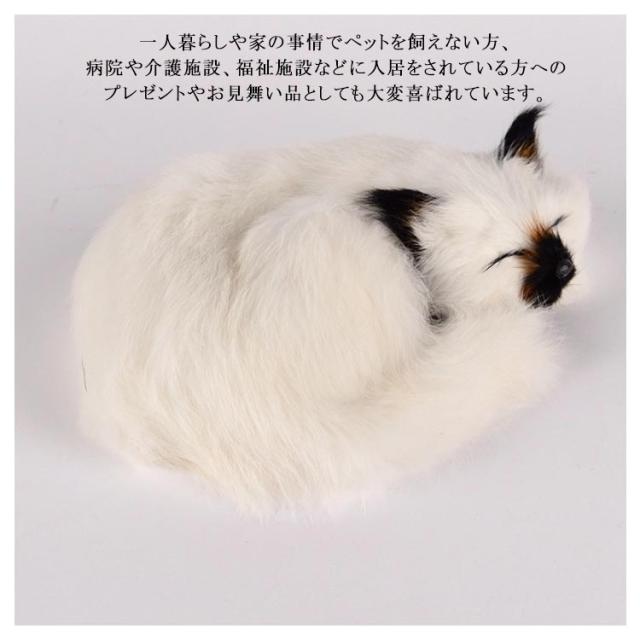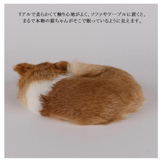 | 本物そっくりに眠る猫のぬいぐるみ。 まるで本物のようなねこちゃん、動物の表情や動き生き生きと再現しています。 毛足の長いふわふわラビットファーを採用し、熟練の職人が丁寧に手作りしたねこのぬいぐるみ、見た目も可愛く思わず触りたくなる。 リアルで柔らかくて触り心地がよく、ソファやテーブルに置くと、まるで本物の猫ちゃんがそこで眠っているように見えます。 リアルペットの代わりに簡単に代替手間や費用をかけずに、自分だけのペットを飼うことの便利さと愛情をお楽しみください。 一人暮らしや家の事情でペットを飼えない方、病院や介護施設、福祉施設などに入居をされている方へのプレゼントやお見舞い品としても大変喜ばれています。 車、机、部屋、テーブルなど様々な場所にインテリアとして置いていただけます。居心地の良い暖かい雰囲気を作り出し癒されるアイテムです。 | |