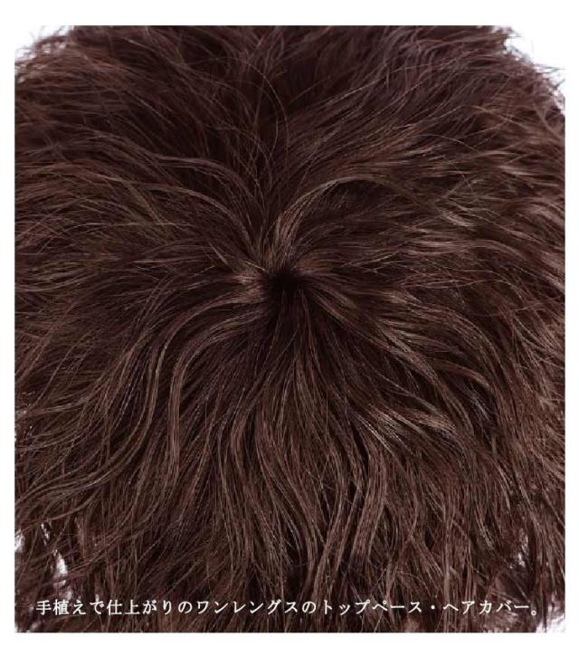 | 手触りも柔らかく、気になる部分をしっかりカバーしてくれます。 前後左右同じ長さのワンレングスタイプなので、どこからつけてもOK! 人工頭皮に毛を手植えしてるので、自毛のようにふんわり立ち上がり、見た目も自然! 程よい毛量で抜け毛、脱毛、薄毛隠しにお勧め! 手植えで仕上がりのワンレングスのトップペース・ヘアカバー。 毛量少なめの軽量タイプで、サッと着けられてアレンジもしやすい。 人毛なので、アイロン、コテ、ドライヤー、またパーマ、ブリーチ、スタイリング剤などの使用も可能です。 | |