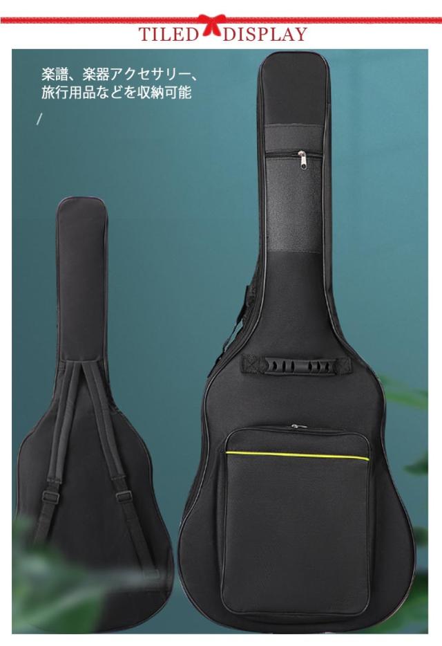 | 外側に大きなポケットを備えた、シンプルでスタイリッシュなギターバッグです。 【収納袋拡大】 楽譜、楽器アクセサリー、旅行用品などを収納可能 【収納袋2枚】 大きいものから小さいものまで分類して収納できます [ショルダーストラップ] 持ち運びが簡単で、旅行中もより快適になります 【防水・防湿】 高密度の厚みのあるオックスフォード生地、防水性と防湿性があり、雨や雪の中での旅行に同行できます。 | |