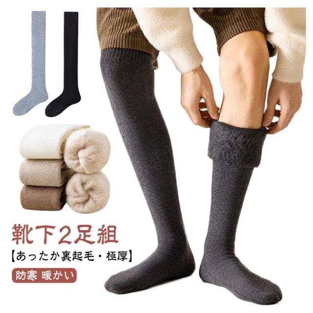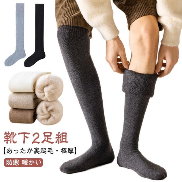 ニーハイソックス メンズ 【2足組】ロング 防寒 ハイソックス フォーマル 極厚 あたたかい 靴下 冬用 ビジネス 保温 ルームソックス ポカポカ ソックス あったか靴下 レディース 裏起毛 暖かい 吸湿 冷え対策