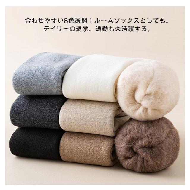| 【あったか裏起毛・極厚】【靴下2足組】 裏地毛付きで寒い季節に足元をしっかりと保温、温めてくれます。 肌にやさしく、ボリューム感のある風合いと肌触り・保湿・吸湿性に優れている。 伸縮性のよい履き口、ずりおちにくい。 踵部分は強化することにより通常より長くお使いいただける。 膝までカバーしてくれるから、美脚効果なだけではなく防寒にも抜群! 合わせやすい8色展開!ルームソックスとしても、デイリーの通学、通勤も大活躍する。 | |