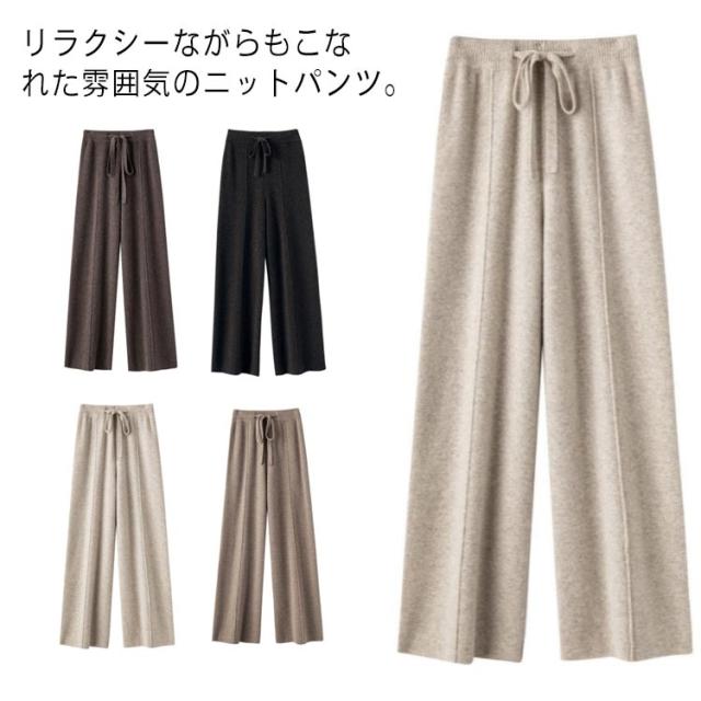 イージーパンツ ニットパンツ レディース ワイドパンツ 秋冬 春 ウエストゴム ロングパンツ ゆるパンツ スラックス ニットパンツ ガウチョ フレアパンツ 大人カジュアル シンプル 通勤 20代 30代 40代 ママ 母