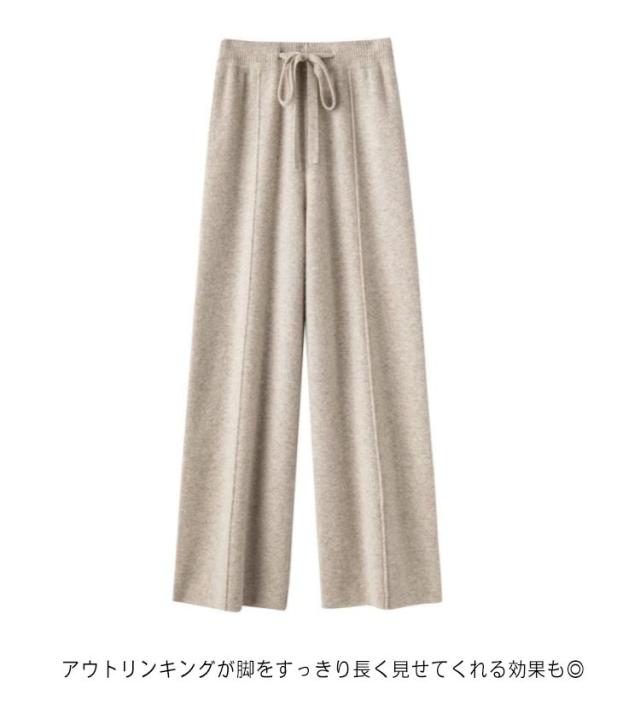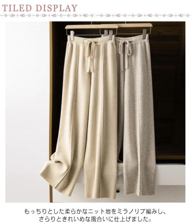 | リラクシーながらもこなれた雰囲気のニットパンツ。 もっちりとした柔らかなニット地をミラノリブ編みし、さらりときれいめな風合いに仕上げました。 ややワイドめで、旬のルーズシルエットを描きます。 アウトリンキングが脚をすっきり長く見せてくれる効果も◎ ウエスト部分はドロスト付きで、リラックスウェアとしても◎ トレンドライクなスタイルで楽しめるリラクシーなニットパンツです。 | |