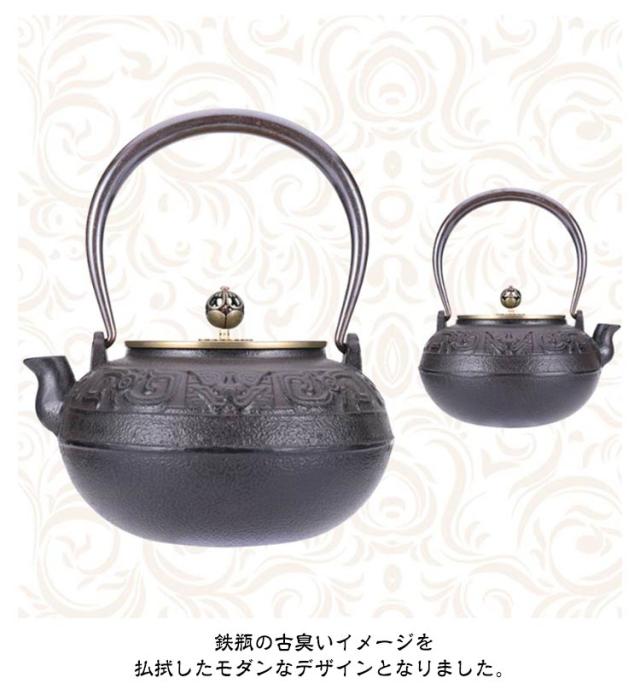 | 32色 1200ml 電磁調理器(IH)、ガス火、直火、セラミックヒーターに対応 直火だけではなくIH調理器にも対応しております。 茶こしがついており、鉄瓶だけではなく急須としても使用することが出来ます。 手に触れる部分には銅を用いることで、使いやすさはもちろん、 鉄瓶の古臭いイメージを払拭したモダンなデザインとなりました。 鉄瓶を直火にかけると鉄分が溶け出し水が柔らかな味になることにくわえ、 鉄瓶の内側に水道水に含まれるカルキが吸着され、お湯をより美味しく楽しむことができます。 底部は熱伝導率を高めるフラット形状で、IH調理器の使用に最適な底面積を確保。 普段使いだけでなく、新築・引越し・結婚式などにも喜ばれる「スマート」ギフトとしても◎ | |