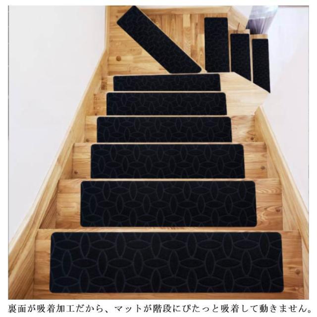 76×20cm 洗える 防音 キズ防止 吸着 滑り止め おしゃれ 足冷え対策 【15枚入】階段マット 高齢者 転倒防止 カーペット 介護 大判サイズ 吸着階段マット ワイド 階段 マット 階段用 吸着マット フリーカット