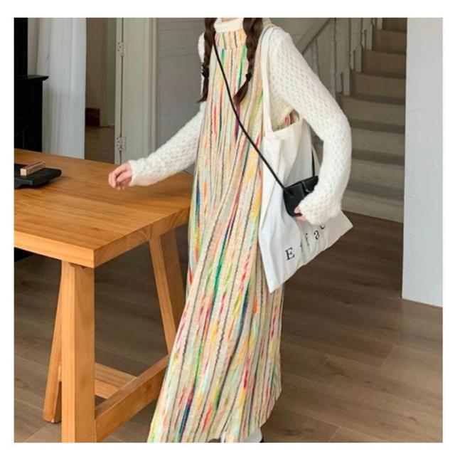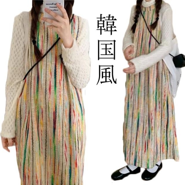 送料無料 ニットワンピース 送料無料 ストラップニットワンピース ノースリーブ 着痩せ レディース タンクトップワンピ 秋冬 重ね着 お洒落 可愛い 韓国風