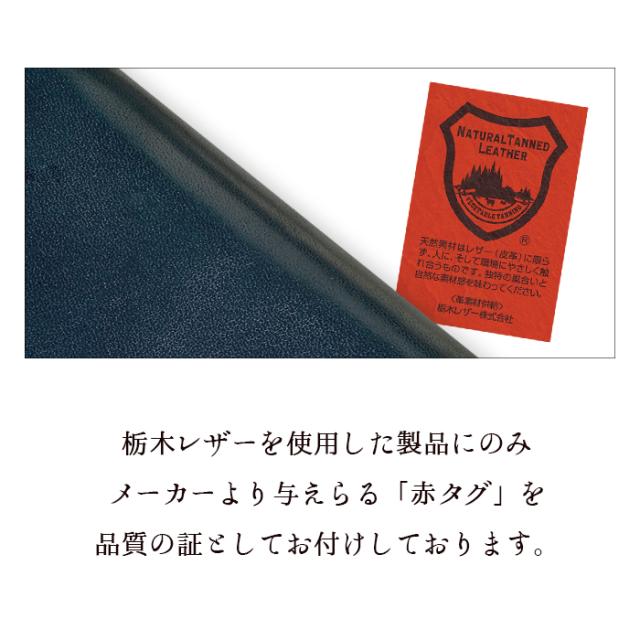 栃木レザーを使用した製品にのみメーカーより与えられる「赤タグ」を品質の証としてお付けしております。