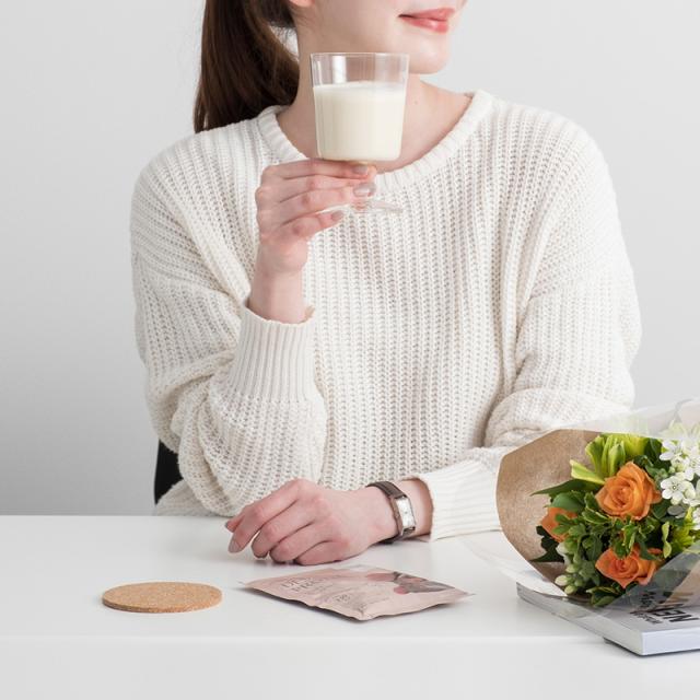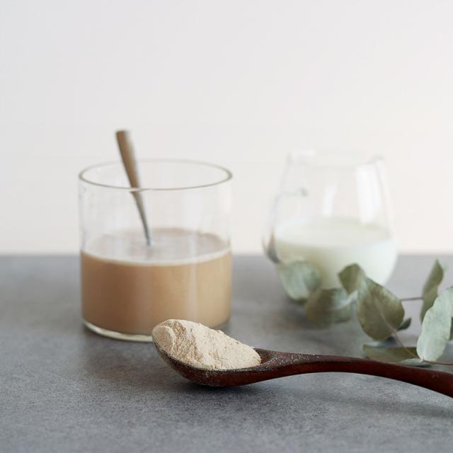 ※タンパク質の性質上、60℃以上の水またはミルクで溶かすと固まってしまう場合がございますのでご注意ください。