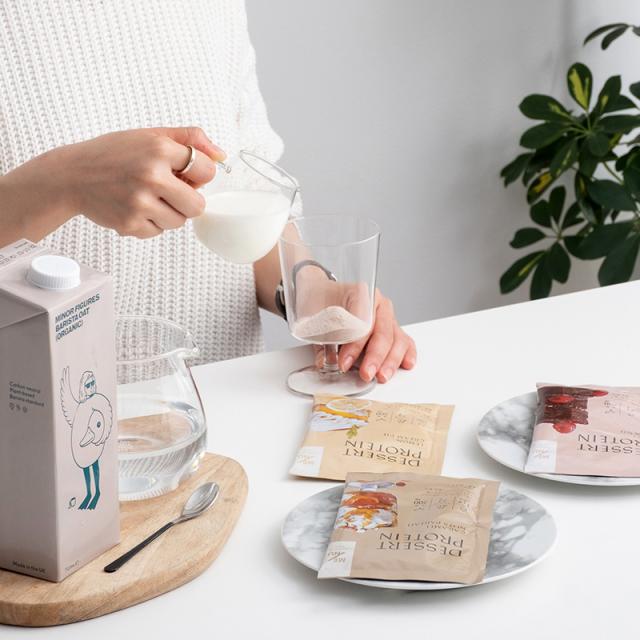 WOMAN'S BASEのデザートプロテインは、1袋に植物性・動物性のタンパク質を20g配合したダブルタンパク型。2種類をバランスよく配合することで、体に吸収されやすく、腹持ちもよくなり満足感のある仕上がりに。妊活中や産後などはもちろん、健康を維持したい全ての女性に飲んでいただきたいプロテインです。