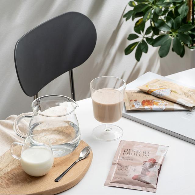 デザートプロテインとは、デザートそのものの濃厚感を楽しみながら11種類もの栄養成分を補給することができる夢のようなケアプロテインです。タンパク質はもちろん、葉酸、カルシウム、鉄に加え、亜鉛、マグネシウム、ビタミンB2・B6・B12、ナイアシン、パントテン酸も配合しました。現代女性に不足しがちな栄養成分がたっぷり入っており、美味しく補給することができます。