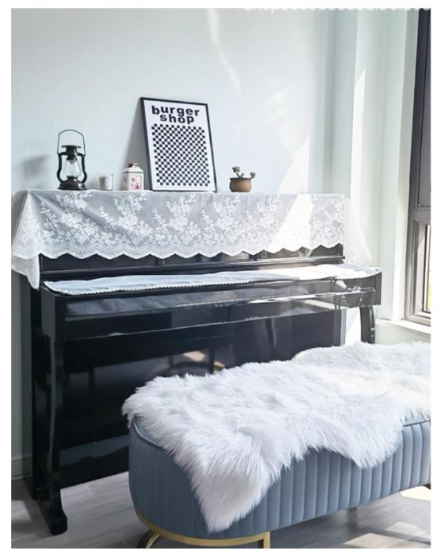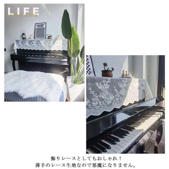 | 大切なピアノの保護を!お洒落で可愛いデザインのピアノカバーです。 繊細な花模様のレースで縁取りされ、華やかで上品な雰囲気になります。 アップライトピアノ、電子ピアノにちょと置くだけの簡単エレガンス仕様。 飾りレースとしてもおしゃれ!薄手のレース生地なので邪魔になりません。 使わない時もコンパクトに場所を取らずに畳んで置けます。 | |