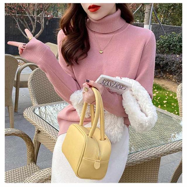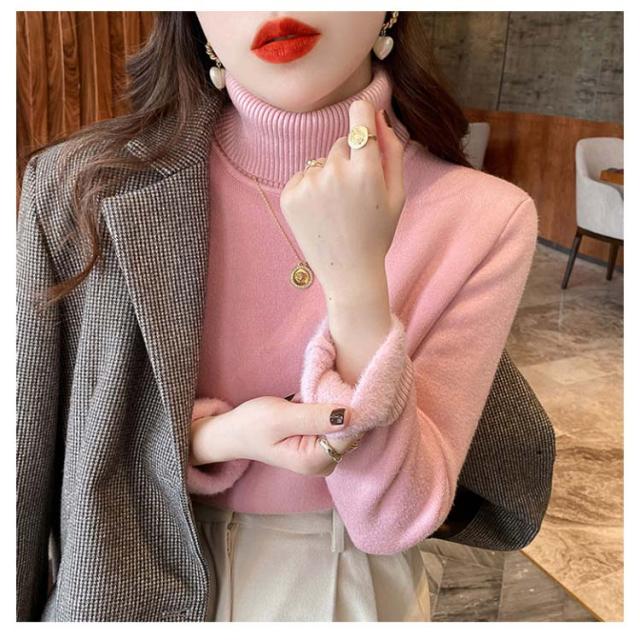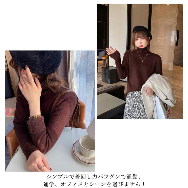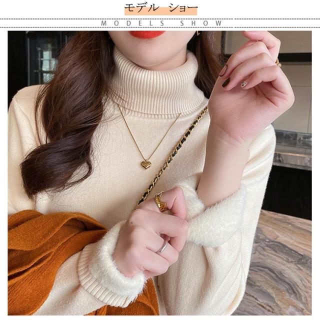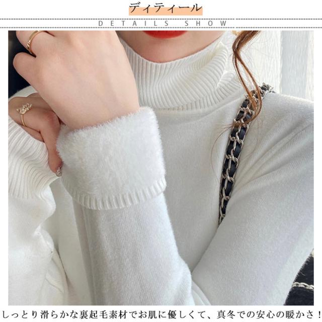 裏ボア きれいめ インナー レディース ハイネック 重ね着 長袖 トップス フィット タートルネック シンプル ニットセーター 裏起毛 暖かい 厚手 防寒 オフィス カジュアル ニットセーター 秋冬 韓国ファッション 送料無料