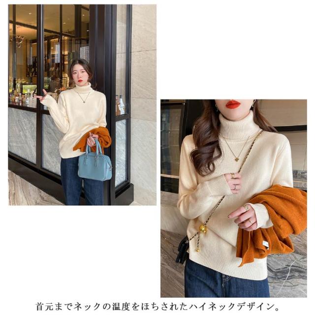 | で着回し力抜群◎寒い時期に大活躍するセーター しっとり滑らかな裏起毛素材でお肌に優しくて、真冬での安心の暖かさ! 首元までネックの温度をほちされたハイネックデザイン。 程よい厚みで肌触りもさらっとしているので心地よく長時間の着用でもストレスフリーです。 トップスやインナーとしても着回しやすく、カジュアルからきれいめまで幅広く活躍できる。 シンプルで着回し力バツグンで通勤、通学、オフィスとシーンを選びません! | |
