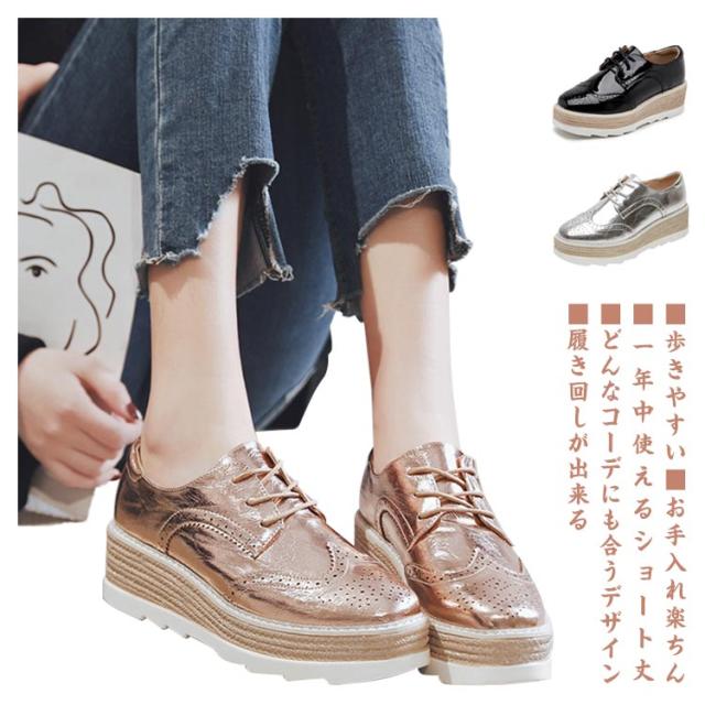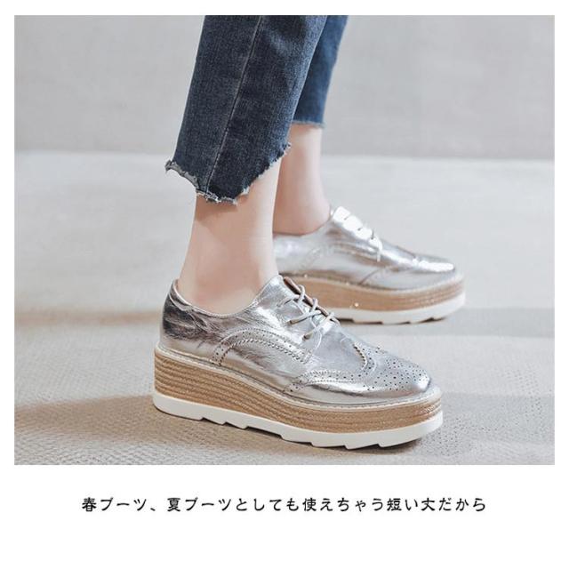 ブーティ シューズ パンプス プラットフォームシューズ 厚底スニーカー レディース 22-24.5cm ローファー 春秋 ウェッジソール レザー ローファー 合成皮革 丸トゥ おしゃれ 靴 学生靴 通学