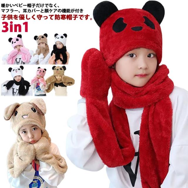 ボア 赤ちゃん フードウォーマー キッズ ネックウォーマー ベビー 子供 マフラー パンダ 保育園 帽子 冬 ふわふわ 一体型帽子 防寒 子供服 着ぐるみ 3in1 帽子 子供 男の子 女の子 おしゃれ もこもこ 3in1 子ども こども 韓国 可愛い 冬 雪 雪遊び