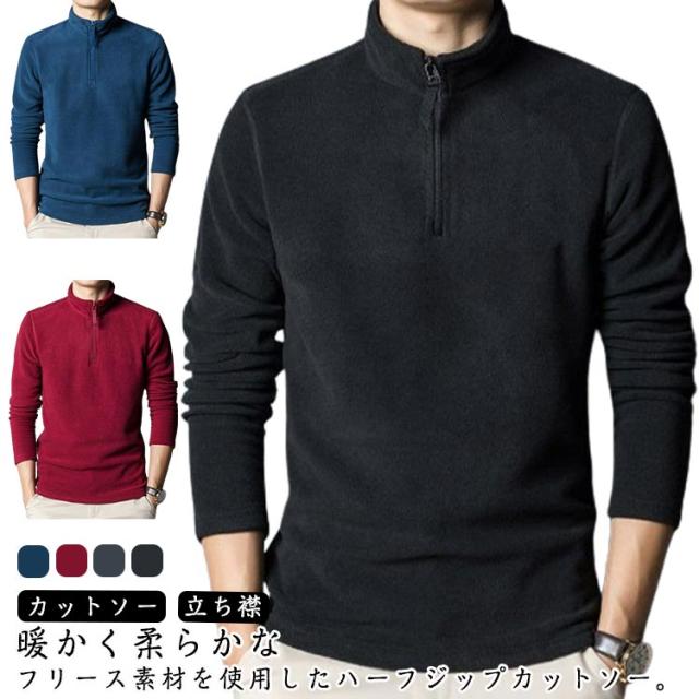 ハーフジップ フリーストップス メンズ カットソー ゴルフ ゴルフウェア 立ち襟 フリース ハーフジップ 防寒 冬 釣り 防寒着 部屋着