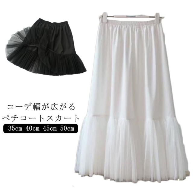 ペチコート 40cm ペチコート ペチコート ペチコートスカート スカート 35cm 45cm 50cm 静電気防止 透けない スカート プリーツ スカート ペチコート 裾ふんわり 重ね着 ロング ペチスカート 下着 ミモレ