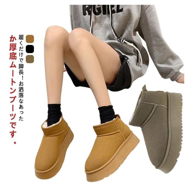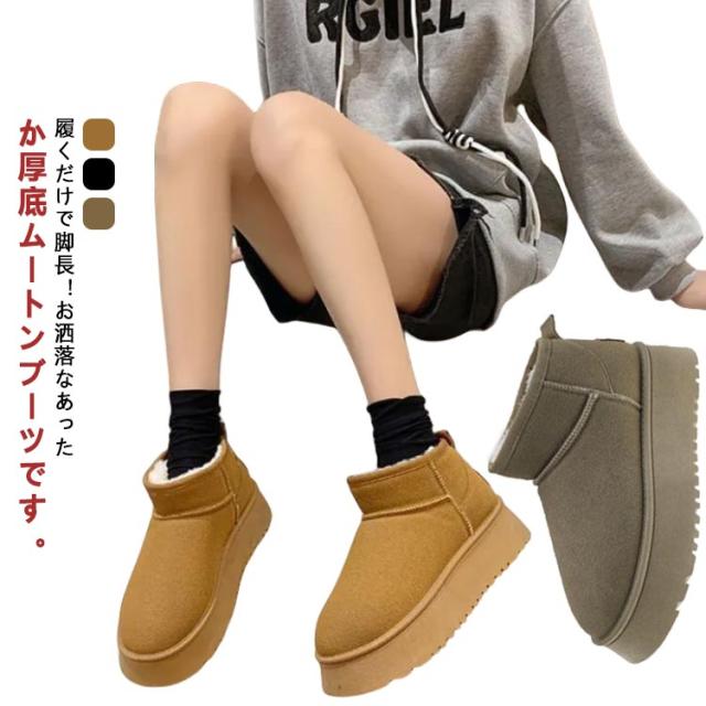 ムートンブーツ 疲れない ショートブーツ レディース 冬 ヒール 5cm ファー 痛くない 歩きやすい 厚底 ムートンブーツ 秋 ルームシューズ 靴 裏毛 生地 ボア 防寒 ブーツ 暖かい あったか 厚底ブーツ 滑り止め 買い物 旅行 おでかけ 普段使い 脚長
