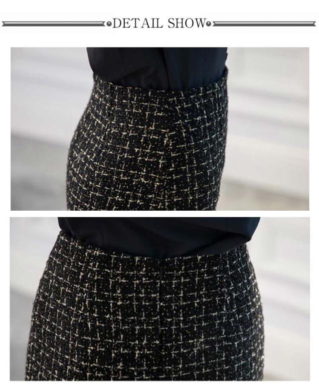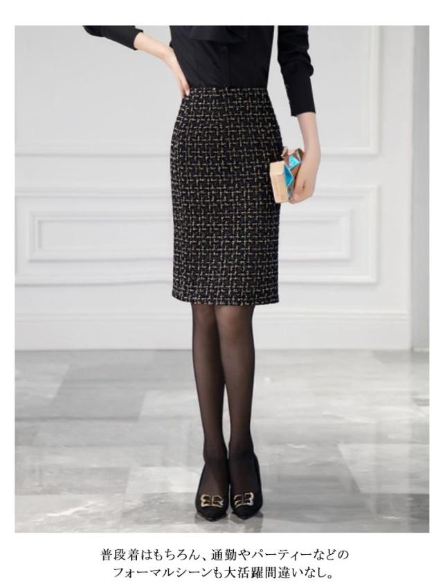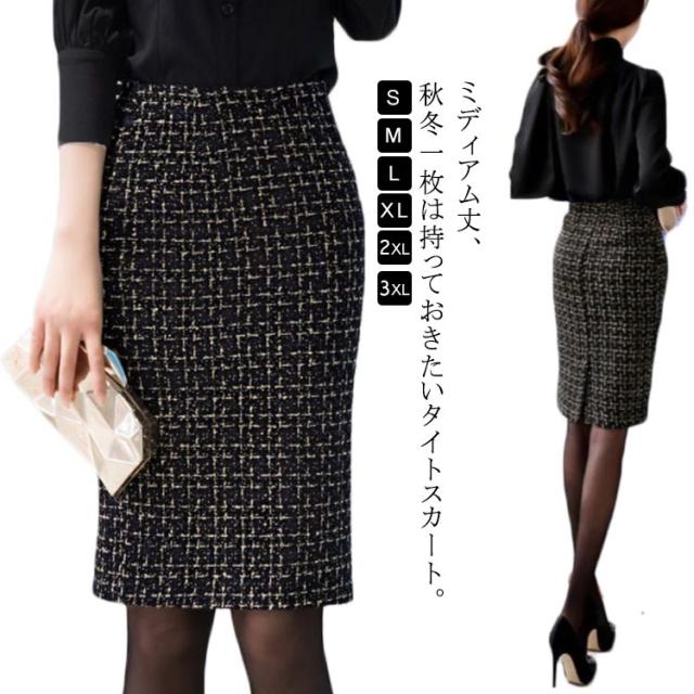 ツイードスカート スリット M 春秋 秋冬 ハイウエスト スカート ペンシルスカート タイトスカート オフィス バックスリット チェック ミディアム丈 通勤 フォーマル 上品 エレガント S タイトスカート L XL 2XL