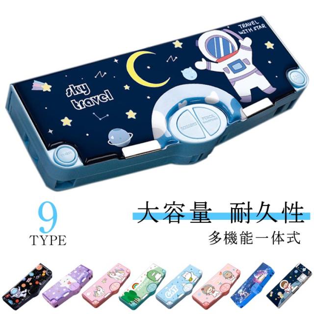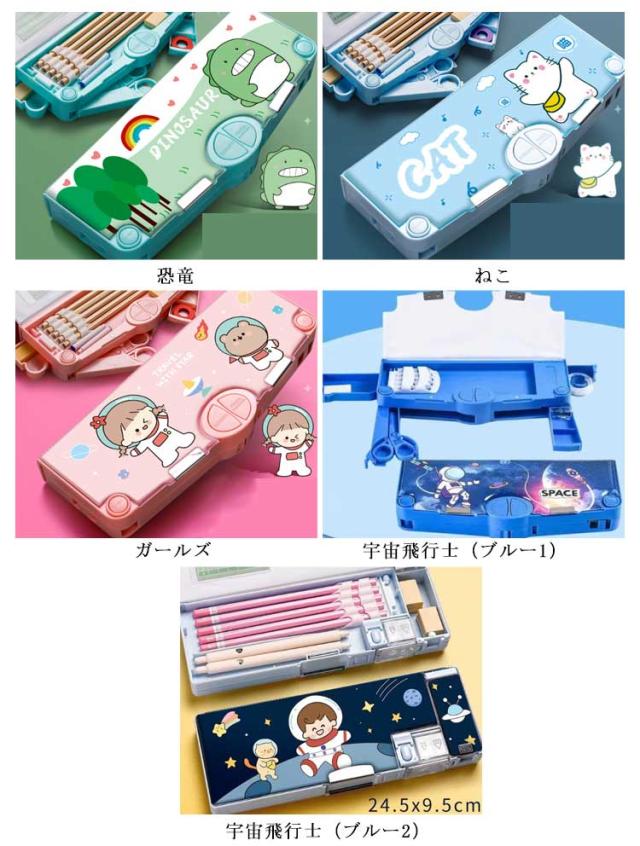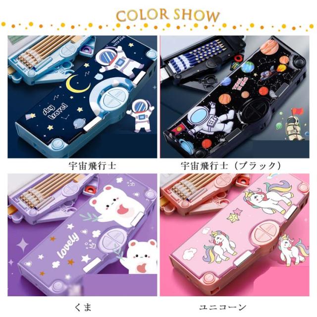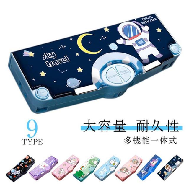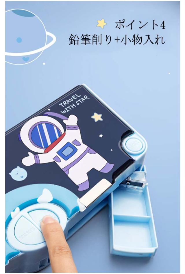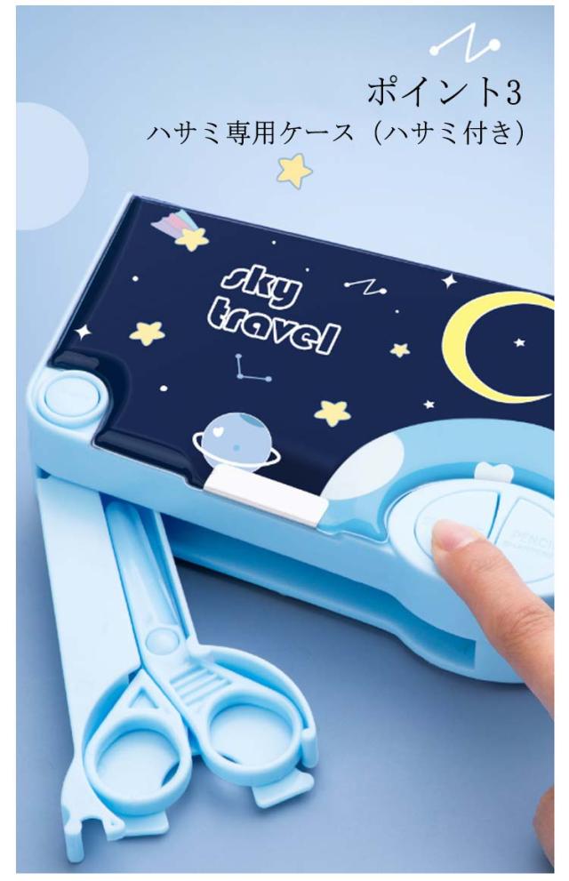 ハサミ ぼたん筆箱 多機能 ペンケース 鉛筆削り付き 両面開き ふでばこ 筆箱 テープ収納リング ペンケース 小物入れ 筆入れ 時間割表 大容量 消しゴム 軽量 耐久性 マグネット コンパクト 男の子 女の子 小学生