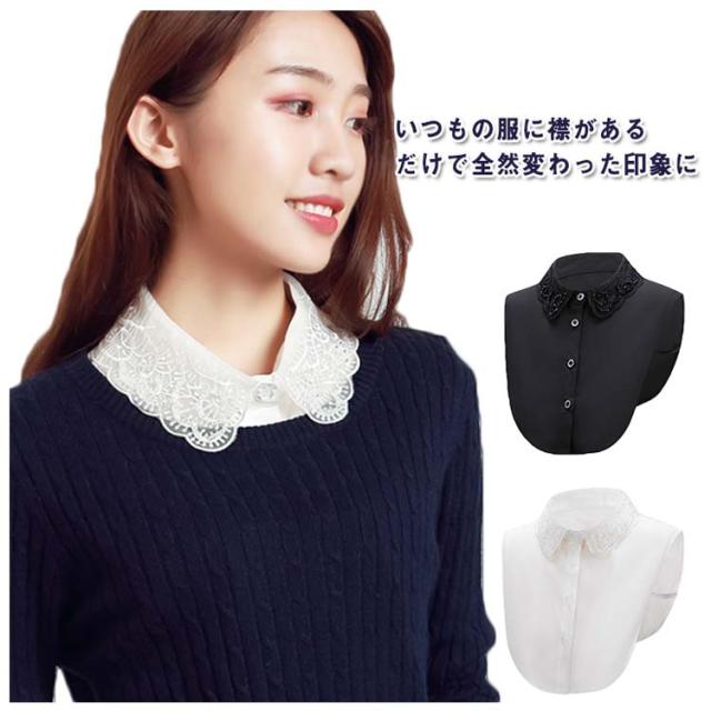 レディース ホワイト 付け襟 ブラウス 丸襟 角襟 オールシーズン つけ襟 花レース ファッション小物 重ね着風 カラーバリ 大人可愛い エレガント つけ襟 かわいい