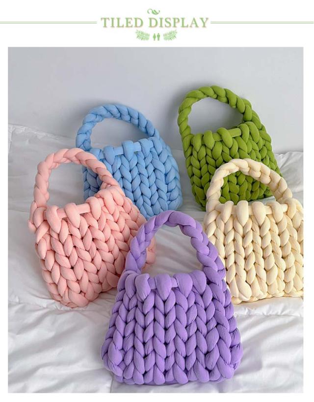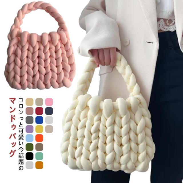 バッグ 毛糸 トートバッグ レディース 完成品 送料無料 チャンキーニット もこもこ ミニトートバッグ 手提げ カバン 極太毛糸編み マンドゥバッグ 毛糸バッグ 韓国ファッション SNS インスタ映え プレゼント