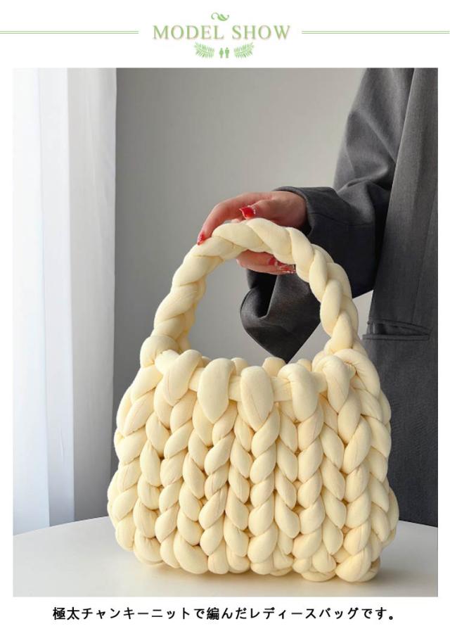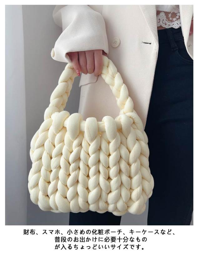極太毛糸編み マンドゥバッグ 毛糸 カバン レディース 送料無料 手提げ もこもこ ミニトートバッグ トートバッグ チャンキーニット バッグ マンドゥバッグ 毛糸バッグ 韓国ファッション SNS インスタ映え プレゼント