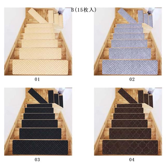 【15枚入】階段マット 76×20cm キズ防止 吸着 滑り止め 防音 おしゃれ 高齢者 大判サイズ 転倒防止 介護 カーペット 洗える 【15枚入】階段マット 吸着階段マット ワイド 階段 マット 階段用 吸着マット フリーカット