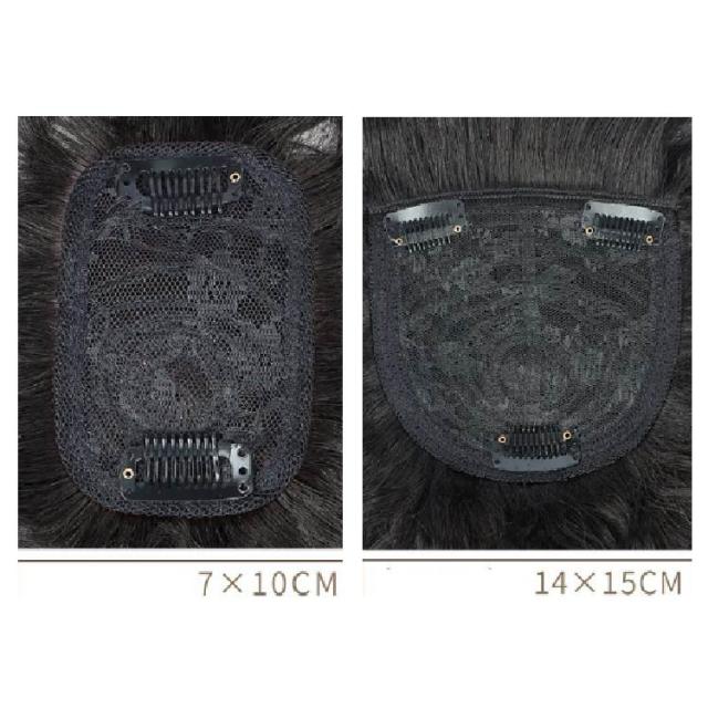 | 手触りも柔らかく、気になる部分をしっかりカバーしてくれます。 前後左右同じ長さのワンレングスタイプなので、どこからつけてもOK! 人工頭皮に毛を手植えしてるので、自毛のようにふんわり立ち上がり、見た目も自然! 程よい毛量で抜け毛、脱毛、薄毛隠しにお勧め! 手植えで仕上がりのワンレングスのトップペース・ヘアカバー。 毛量少なめの軽量タイプで、サッと着けられてアレンジもしやすい。 人毛なので、アイロン、コテ、ドライヤー、またパーマ、ブリーチ、スタイリング剤などの使用も可能です。 | |