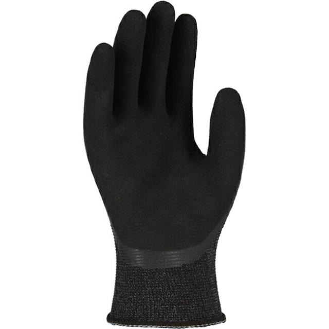 蓄熱繊維を使用することで普段の背抜きコーティング手袋と同じ厚みでありながら暖かい。