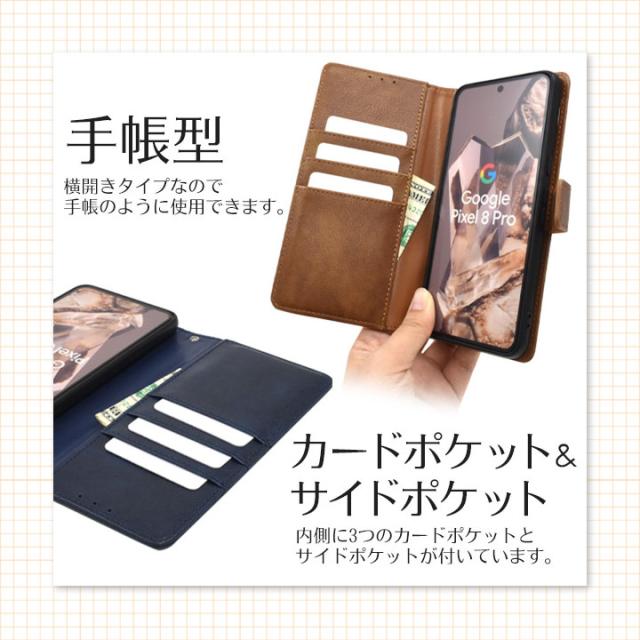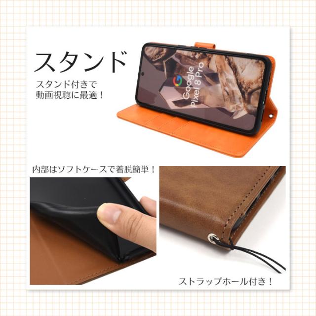 Google Pixel8Pro 手帳型レザーケース オレンジ ネイビー ブラック ブラウン グーグルピクセル8Pro ケース おしゃれ スマホカバー レザー メール便送料無料