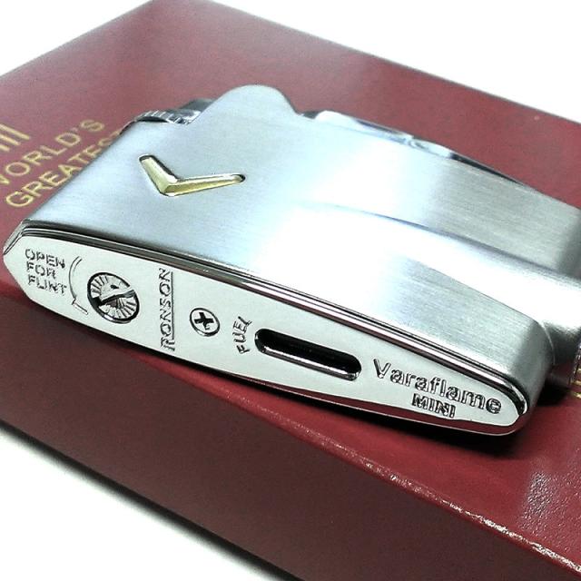ガスライター ロンソン ヴァラフレームミニ クロームサテン フリント式 RONSON シルバー ガス視認窓付き かっこいい シンプル