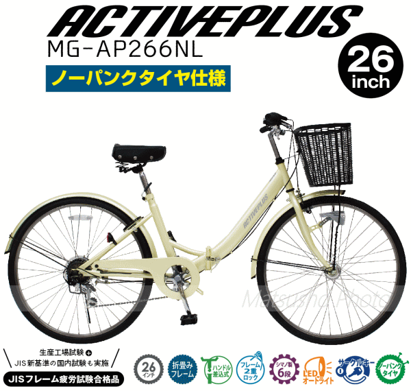メーカー直送 ミムゴ ノーパンク26インチ折畳みシティサイクル 6段変速 ACTIVEPLUS ノーパンクFDB266SL MG-AP266NL 送料無料