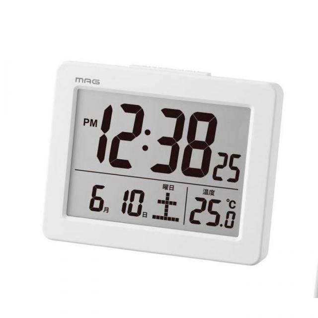 ノア精密 MAG デジタル目覚まし時計 ブリム コンパクト 見やすい めざまし時計 多機能 カレンダー 温度 白 ホワイト 電子音 スヌーズ ライト T-779WH-Z