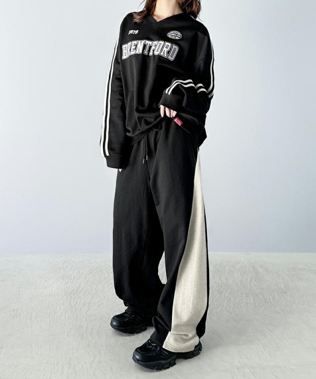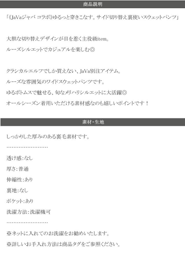 ★《JaVaジャバ コラボ》ゆるっと穿きこなす。サイド切り替え裏使いスウェットパンツ★