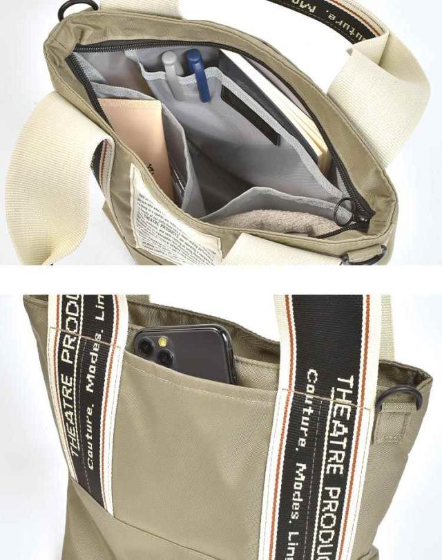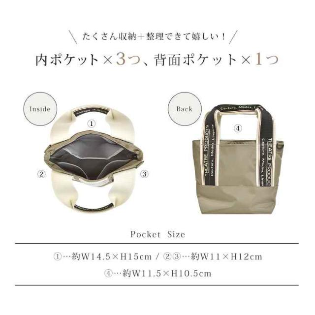 ショルダーバッグ 2way トートバッグ シアタープロダクツ THEATRE PRODUCTS レディース 大人 ナイロン ファスナー 小さめ 軽い 斜めがけ ミニトート マザーズバッグ カバン 黒 ブラック ベージュ カーキ グレー かわいい おしゃれ ブランド 上品 普段使い 通勤