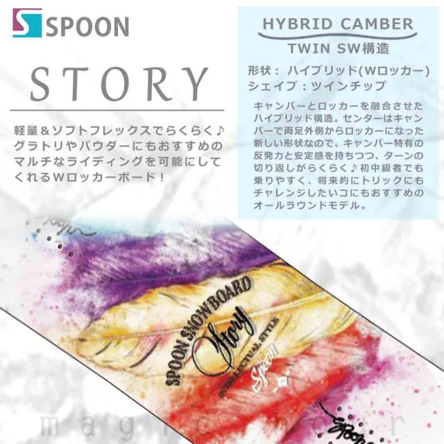 ◆ スノーボード 板 ビンディング レディース 2点 セット SPOON スプーン 2024 23-24 STORY スノボー 初心者 グラトリ ハイブリッド キャンバー ボード 白 青 ◆