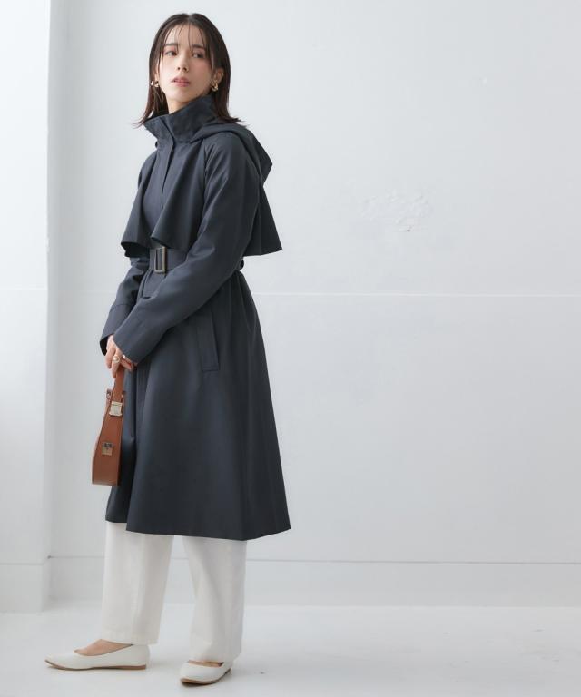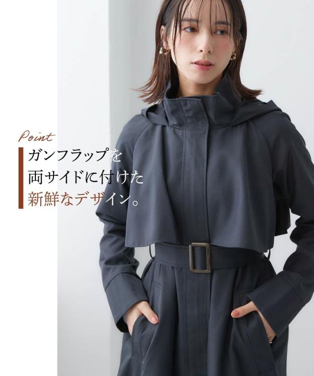 春のお出かけの大敵、「花粉」の悩みから開放!花粉がつきにくいナノはっ水素材を使った、画期的なトレンチコートがお客様のお声にお応えして再登場!花粉ケア素材で花粉がつきにくく、ついても軽く払うだけで落としやすいのが特徴です。耐久性に優れた素材なので効果をキープしてくれるのもうれしいポイント!■デザインガンフラップを両サイドに設け、バックウエスト部分にタックを取ったディティールが秀逸なフーデットコート長めの丈でクラシックながらも大人が着れるトレンド感も満載の1着です。羽織るだけでこなれた印象になり、今っぽいスタ
