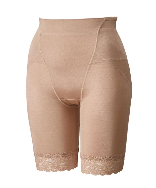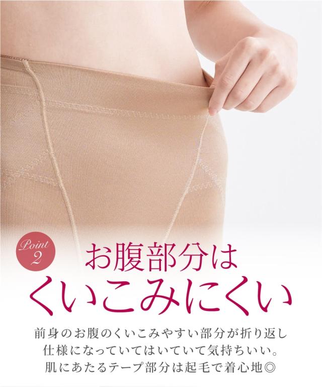 着心地ラクで ヒップ〜お腹をスッキリ こだわりポイント ・ぽっこりお腹が気になる。でも苦しいガードルは苦手…そんな人におすすめの「しっかりサポートするけど着心地ラク」なガードル ・お腹部分は生地二重でぽっこりお腹をすっきりサポート ・お腹部分は折り返し仕様でくいこみにくくはきやすい ・肌に当たるテープ部分は起毛しているので着心地 ・お尻は(パワーネットの)生地二重でキュッと引き締めヒップアップ ・足口幅広レースで段差ができにくくすっきり ・裏マチ部分は綿混素材で一枚ばきOK