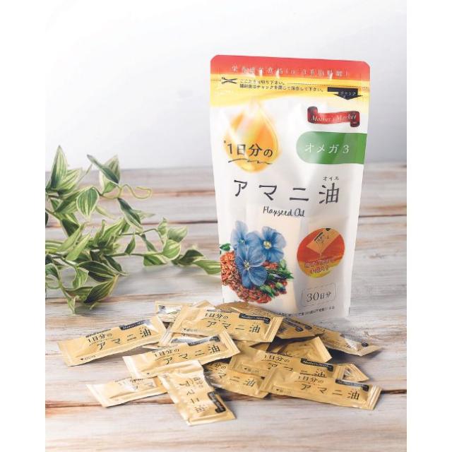 アマニ油は、人の体内では作られない必須脂肪酸のオメガ3脂肪酸の1つ、(α-リノレン酸)を豊富に含んでいます。α-リノレン酸は身体の中で一部EPAやDHAに変わります。