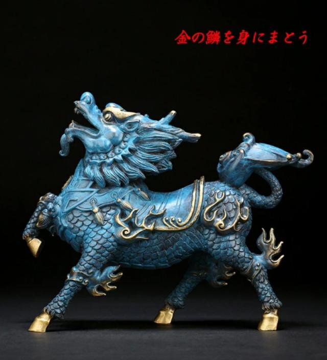 置物 銅製 麒麟 風水グッズ 風水 麒麟の置物 きりん キリン インテリア 古銭 銭 開運祈願 インテリア 開運グッズ 開運アイテム グッズ 玄関 リビング