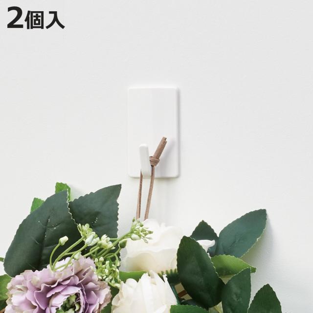 粘着フック 大 2個入り 引っ掛け 壁 ( フック 耐荷重2.5kg 粘着 収納 壁掛け 吊り下げ 壁面収納 粘着テープ 小物掛け 洋服 ハンガー キッチン 玄関 壁面 小物 キーフック 鍵 小物フック )