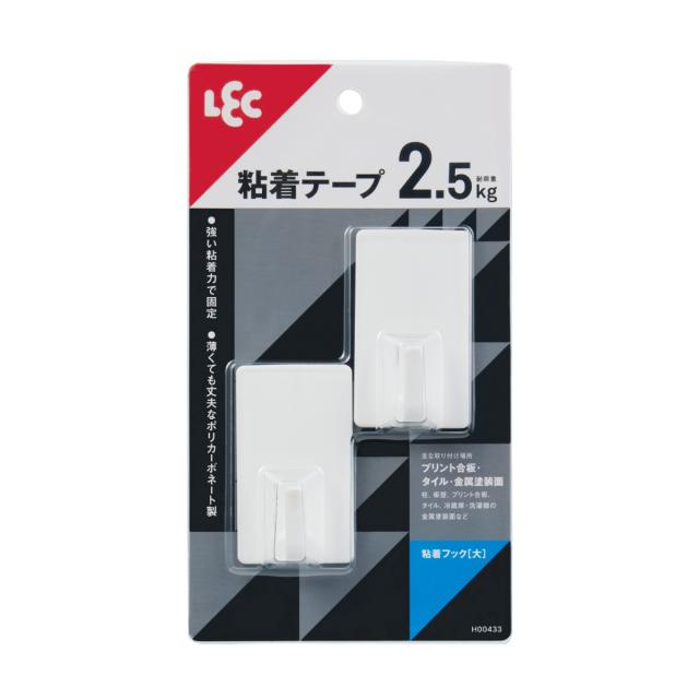 粘着フック 大 2個入り 引っ掛け 壁 ( フック 耐荷重2.5kg 粘着 収納 壁掛け 吊り下げ 壁面収納 粘着テープ 小物掛け 洋服 ハンガー キッチン 玄関 壁面 小物 キーフック 鍵 小物フック )
