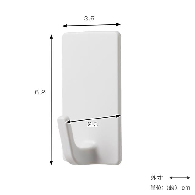 | 備考 | 取り付け方法:粘着テープ 【主な取り付け場所】 ・凹凸のないなめらかな面、柱、板壁、プリント合板、化粧合板、タイル、ガラス、ステンレス、冷蔵庫・洗濯機などの金属塗装面、塗装のしていないコンクリート ※一部のプリント合板には粘着テープが付きにくいものがあります。取付壁面をお手持ちの消しゴムでこすってからお取り付けください。 【取り付けられない場所】 ・凹凸、ザラザラ、表面がはがれやすい面 ・布壁、壁紙、ビニル壁紙、土壁、しっくい、モルタル、塗装壁、塗装合板 ・キッチン・浴室などで特に水滴のつく所、水のかかる所 ・レンジ・ストーブなどで高温になる所 ・模様のあるタイル |