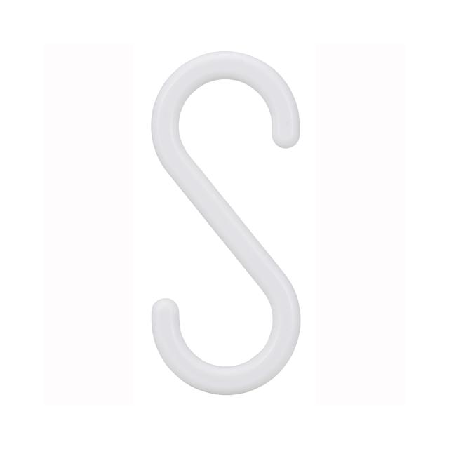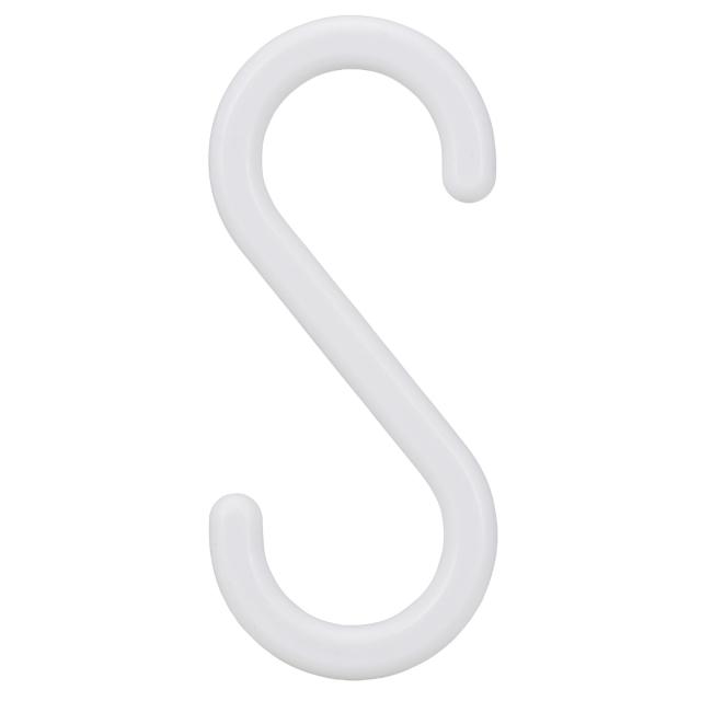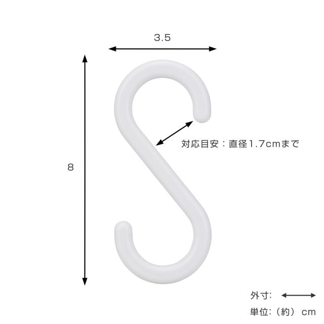 ポリカーボネート製のS字フックです。直径1.7cmまでのタオル掛けやパイプ棚などに対応しています。