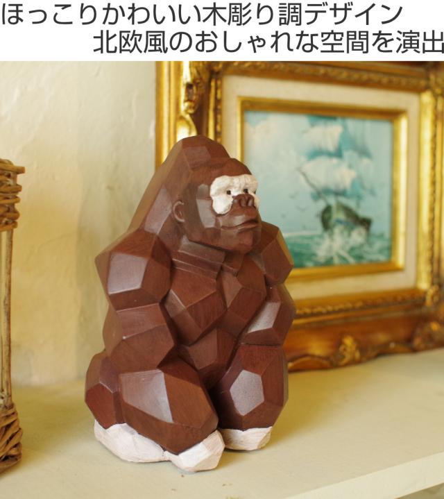 オブジェ スオーラマネーバンク ゴリラ 貯金箱 ( マネーボックス コイン マネーバンク 500円玉 貯まる コイン入れ コインバンク 貯金 小銭 北欧 木彫り調 アニマル 動物 置物 ゴム栓付き 硬貨 グッズ おしゃれ かわいい )