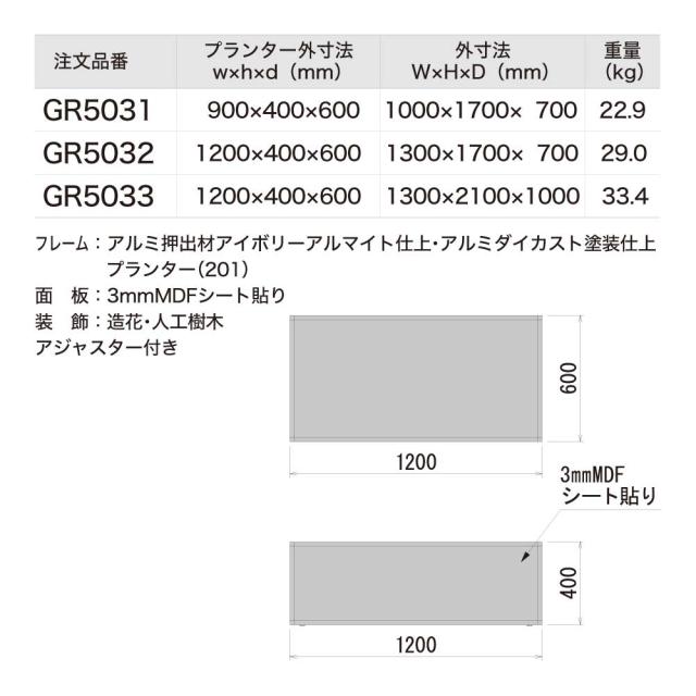 ※グリーンは造花の為、屋内設置でも直射日光や高温により、変色劣化する場合がございます。