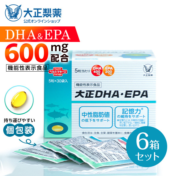 【レビューでポイント5%】【公式】大正製薬 大正DHA・EPA 30袋 6箱 サプリ サプリメント dha epa 健康 健康食品 記憶力 持ち運び 持ち歩き 血中 オメガ3脂肪酸 栄養サプリ カプセル 脂質 血中脂質 血中コレステロール 健康サプリメント 高齢者 飲みやすい