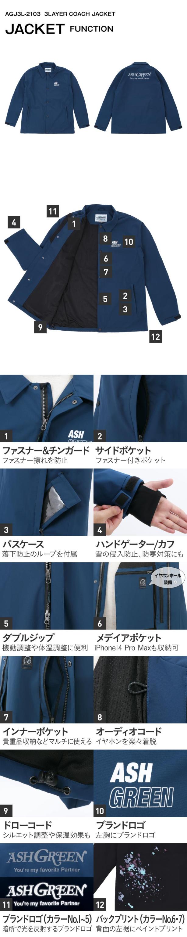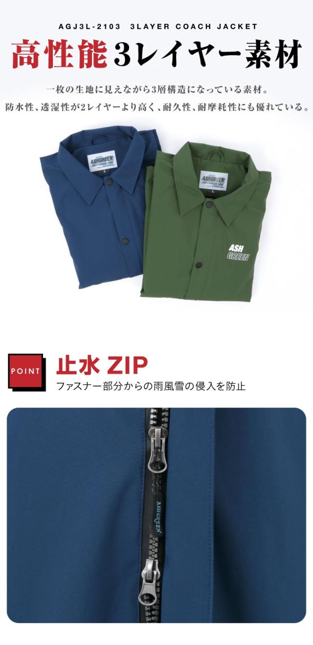【SALE】 ASHGREEN/アッシュグリーン メンズ レディース 3レイヤーコーチジャケット AGJ3L-2103 スノージャケットスキー スノボ スノーウェア 上