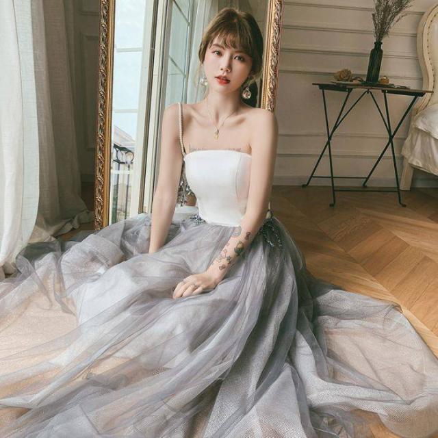 ブラトップドレススカートセレブ 森ガール系ロングバースデーイブニングドレス女2024新品宴会気質司会ワンピース